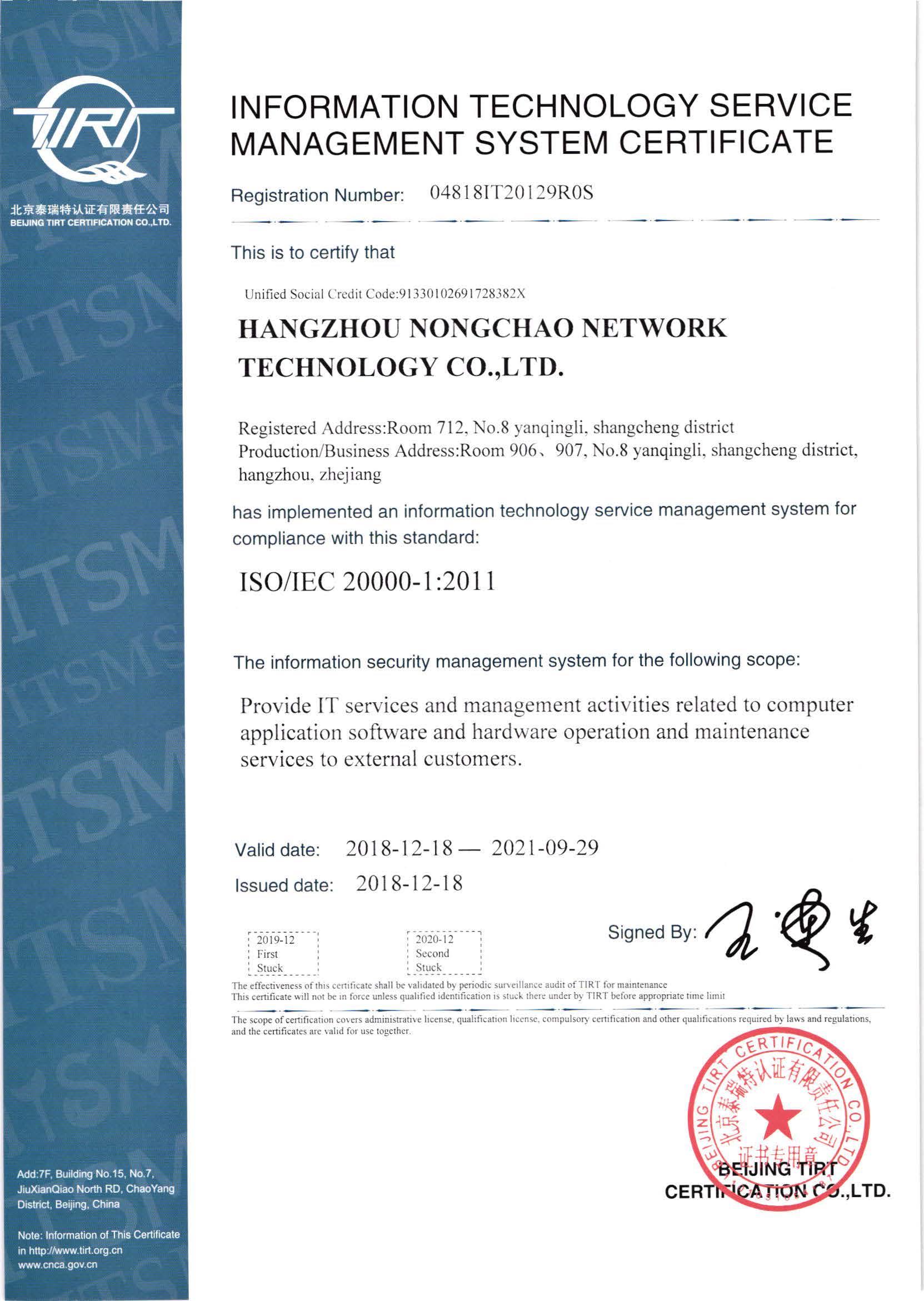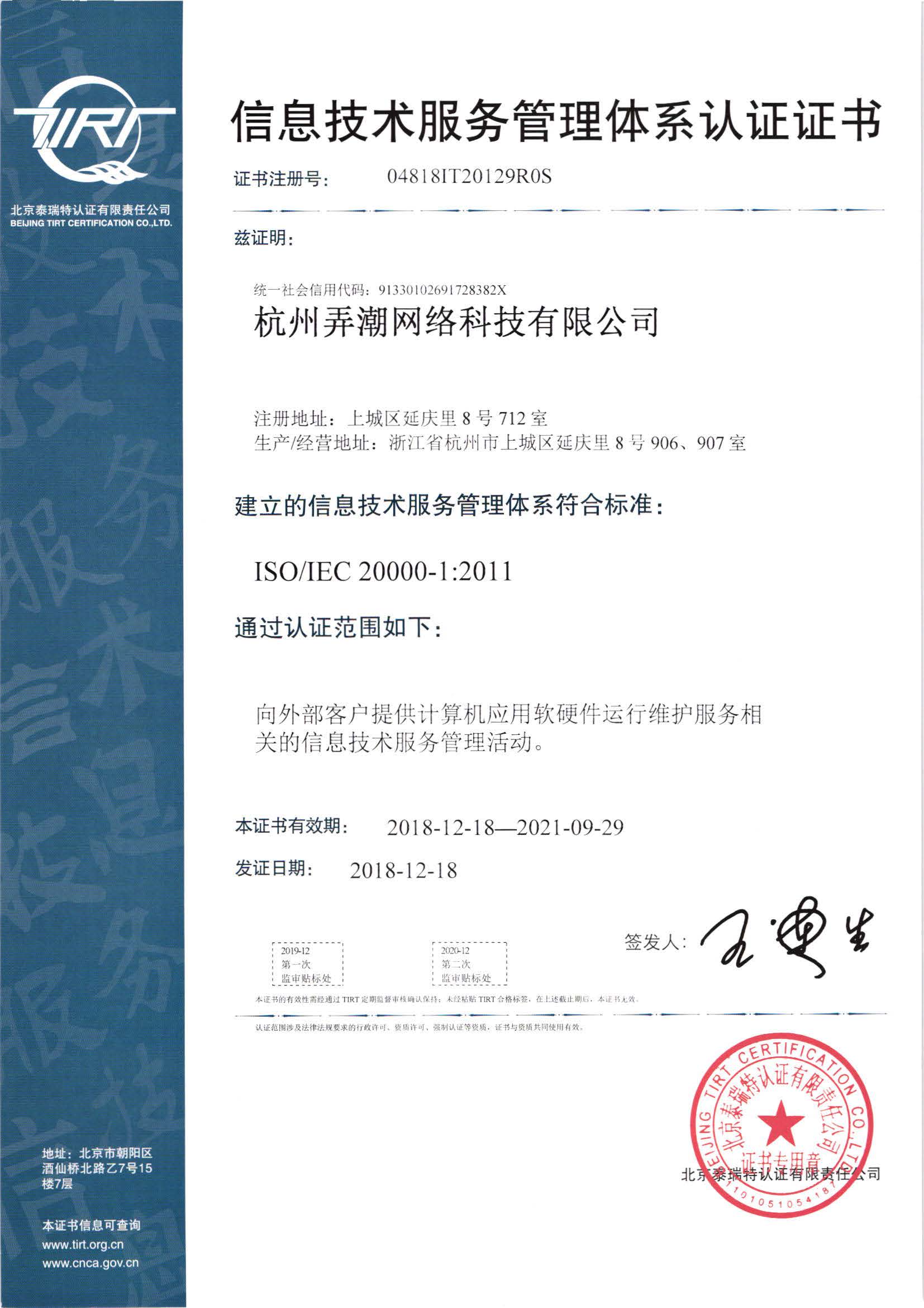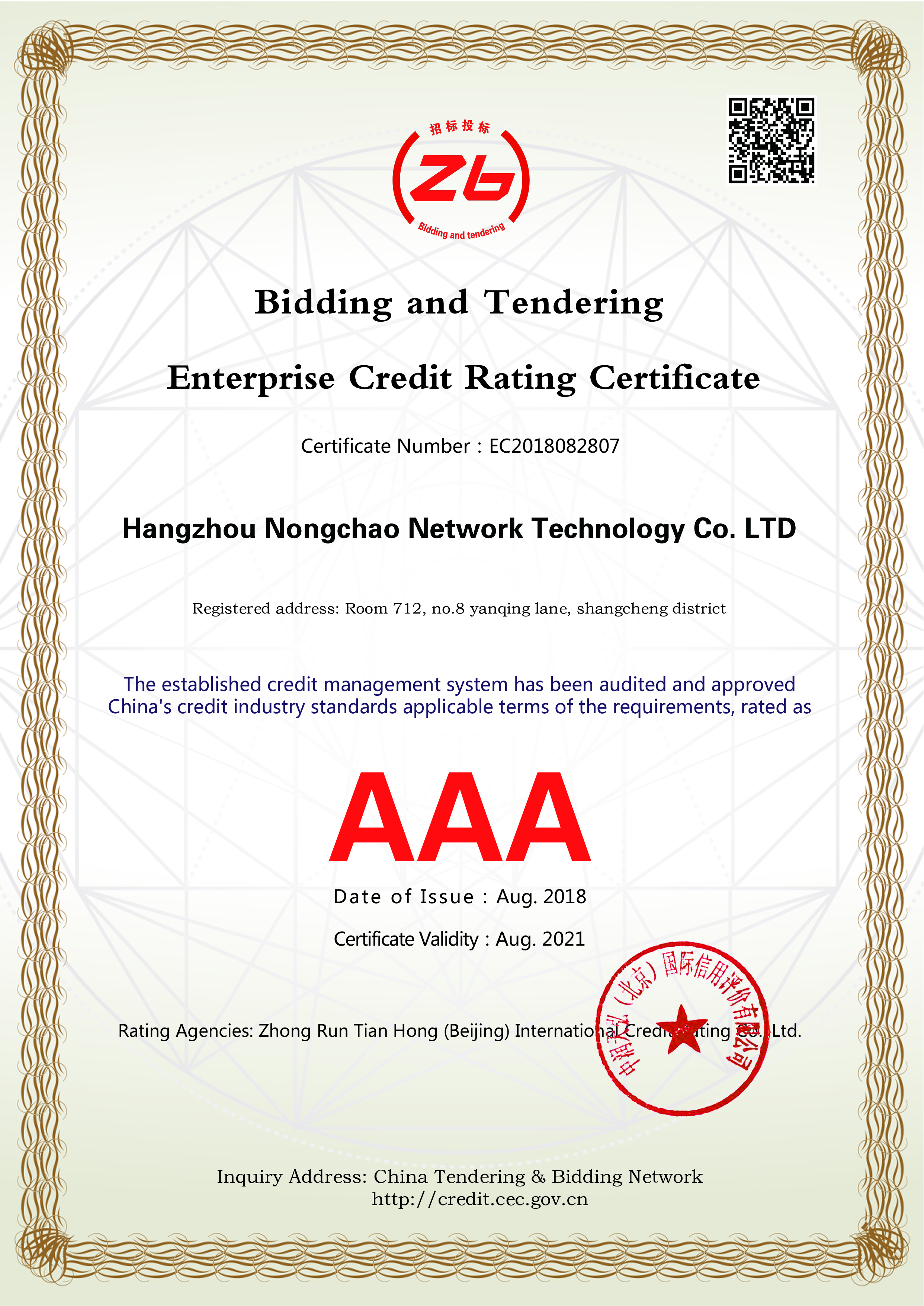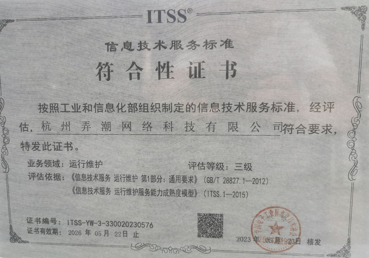 公司被评为浙江省科技型中小企业和杭州市高新技术企业,并获得AAA级企业信用等级,同时相继通过ISO9001质量管理体系认证、ISO20000信息技术服务管理体系认证、ISO27001信息安全管理体系认证和ITSS信息技术服务运行维护标准叁级认证。