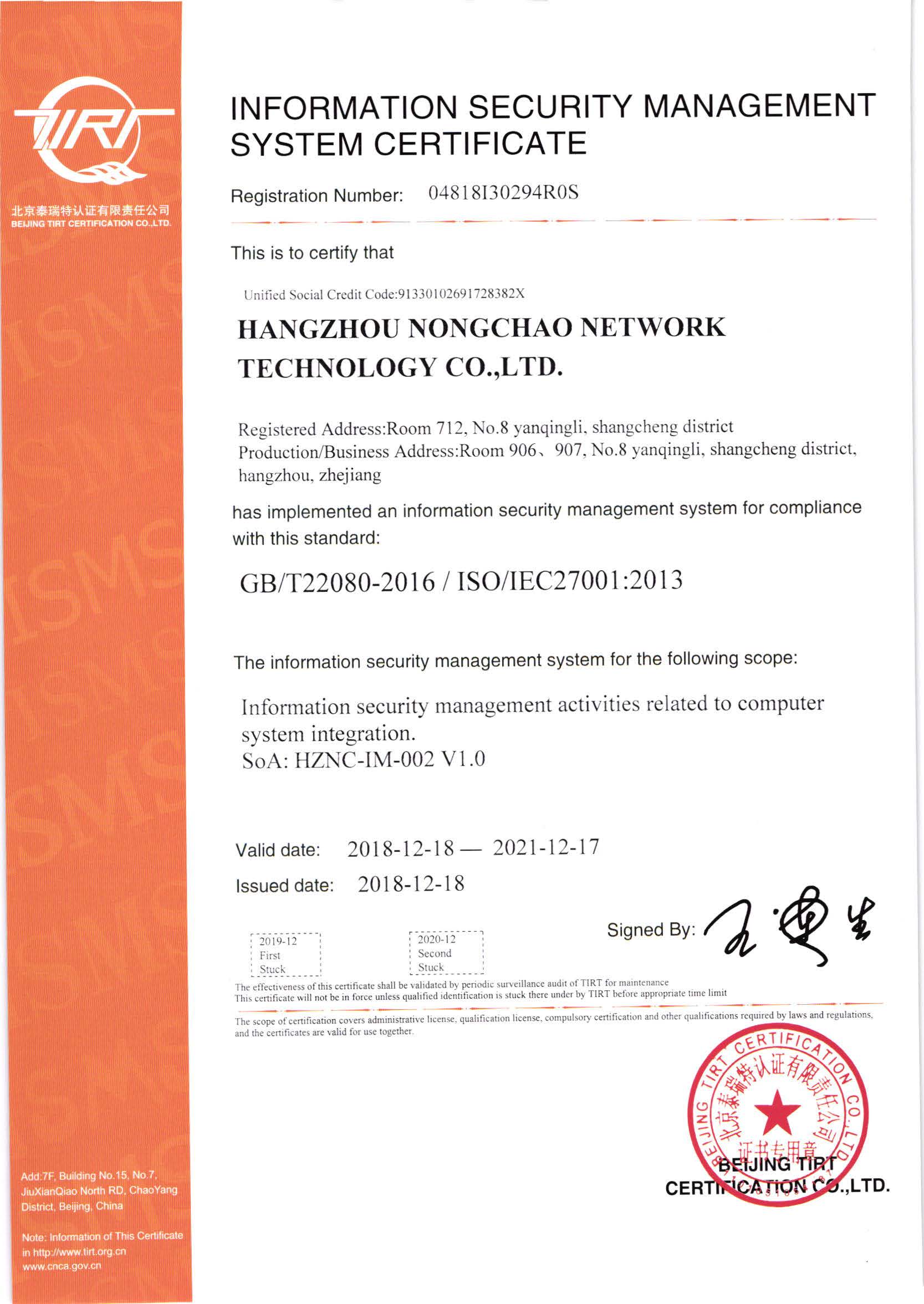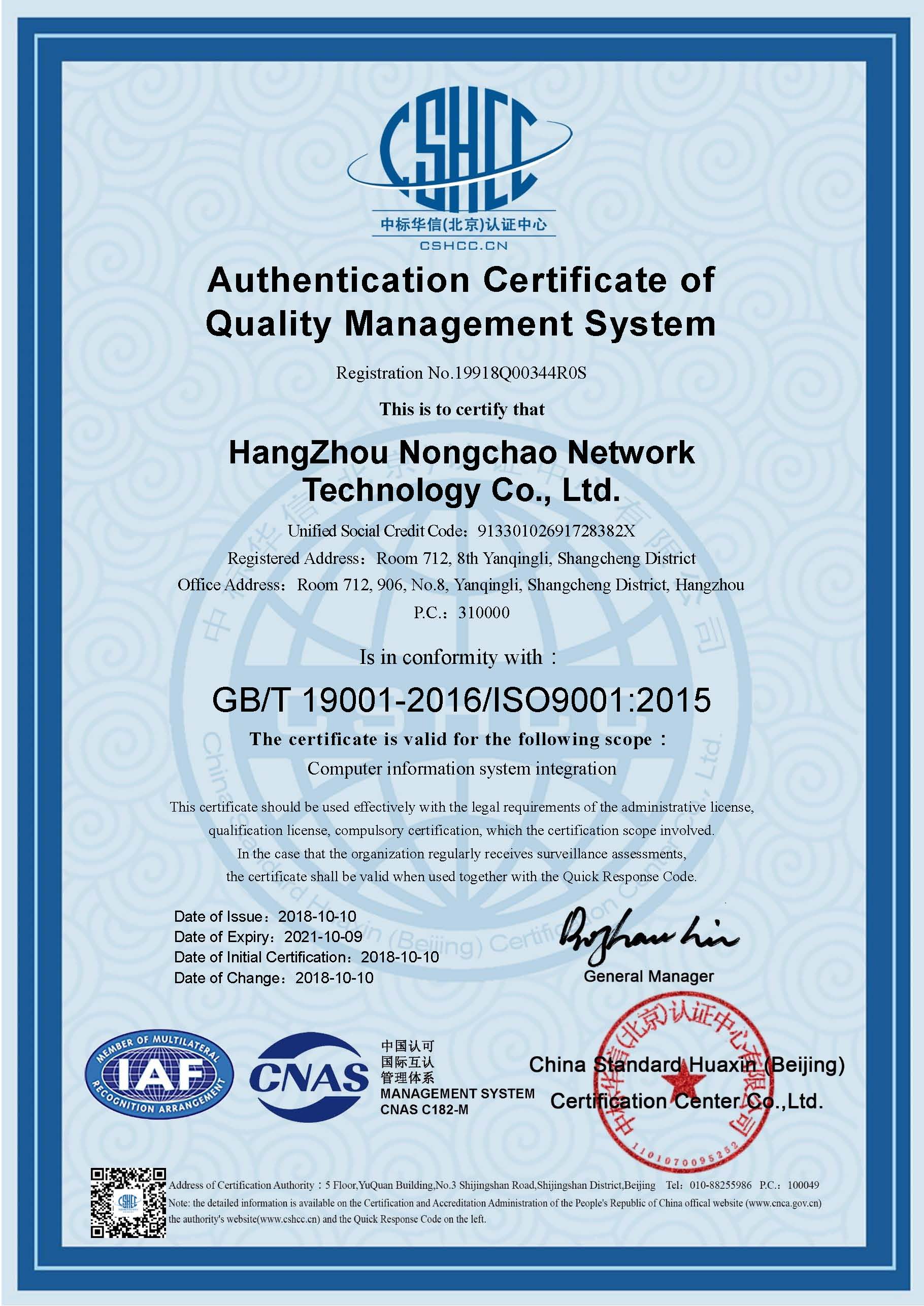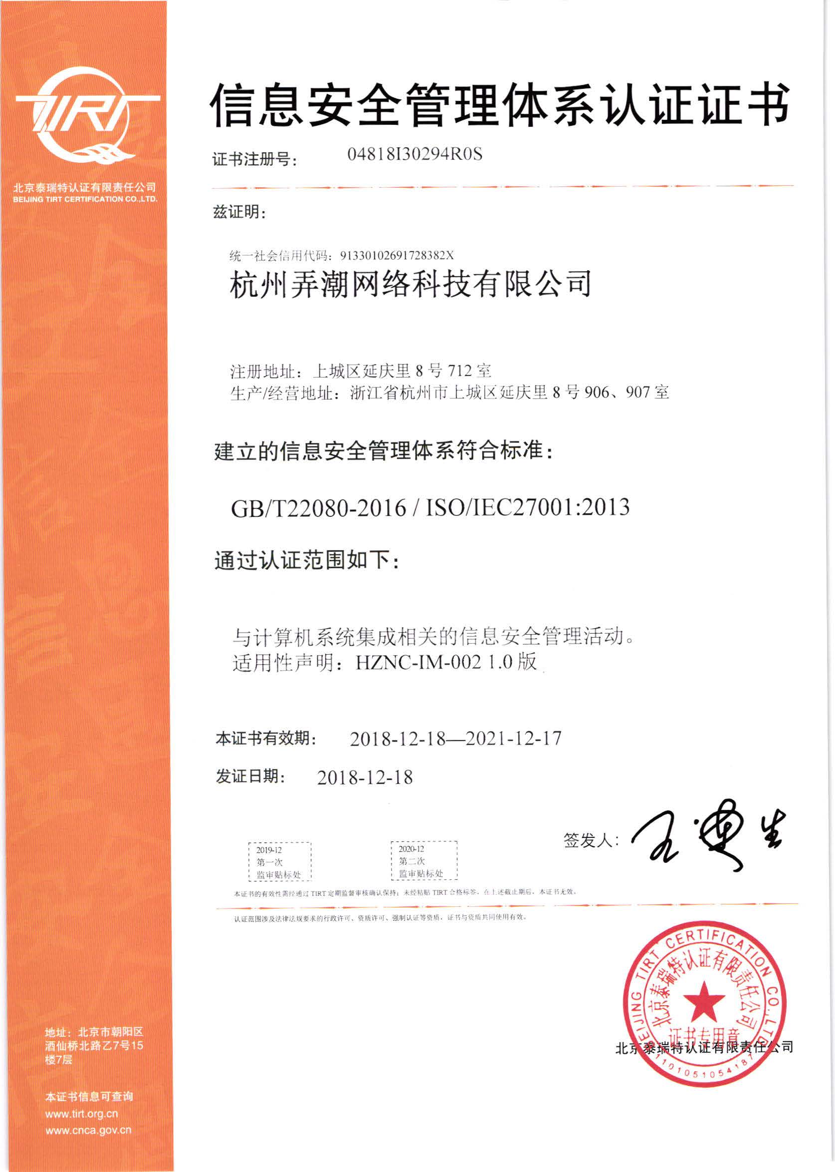 公司被评为浙江省科技型中小企业和杭州市高新技术企业,并获得AAA级企业信用等级,同时相继通过ISO9001质量管理体系认证、ISO20000信息技术服务管理体系认证、ISO27001信息安全管理体系认证和ITSS信息技术服务运行维护标准叁级认证。