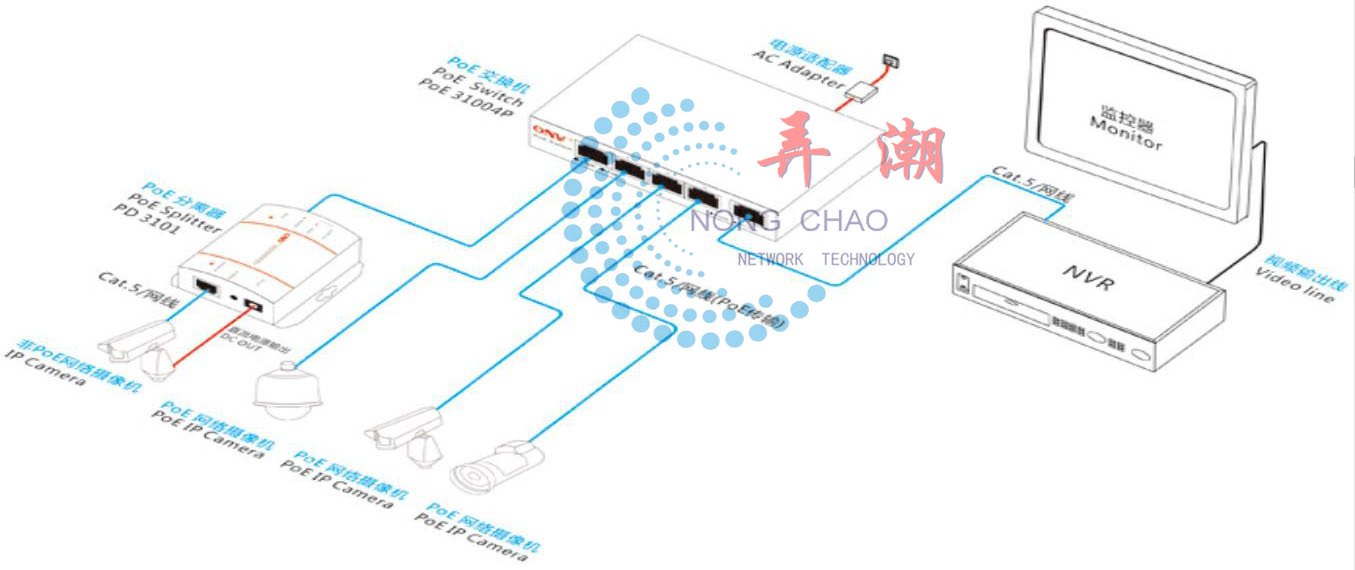 8、在网络摄像机局域网中,PoE可以简化测试任务,接入点能够被轻松地移动和接入。
