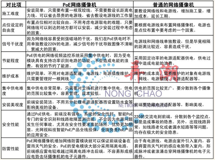 下表列出了在具体工程应用中PoE网络摄像机与普通网络摄像机的对比效果。
